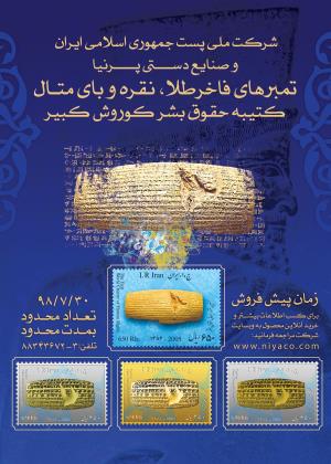 تمبرینه های فاخر کلکسیونی طلا و نقره و بای متال کتیبه حقوق بشر کوروش کبیر